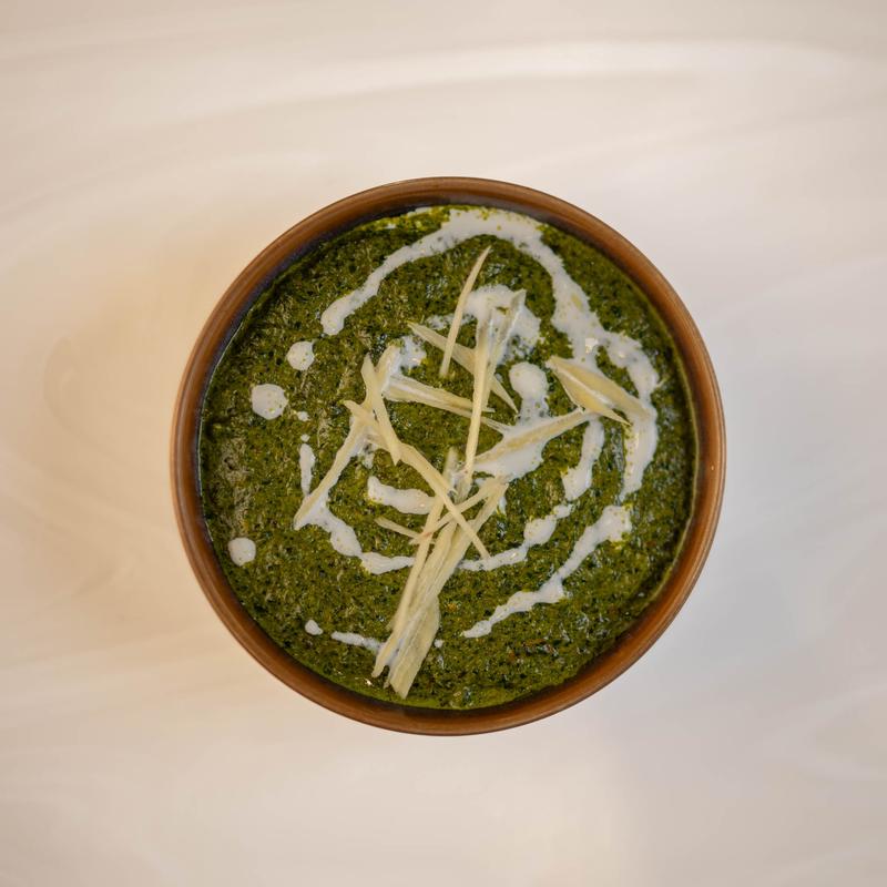 Cottage cheese simmered in a smooth spinach sauce with garlic and mild spices.